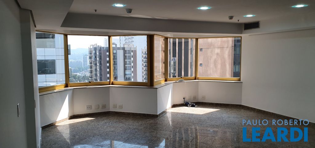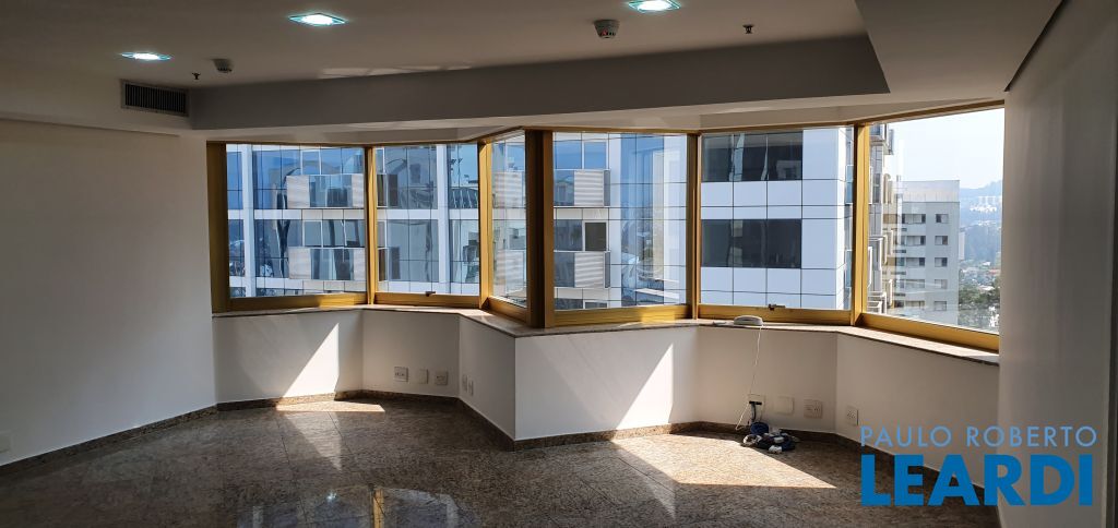 sala pronta para uso com piso em granito, iluminação, ar condicionado central,2 banheiros, copa, 1 vaga de garagem