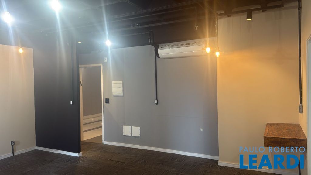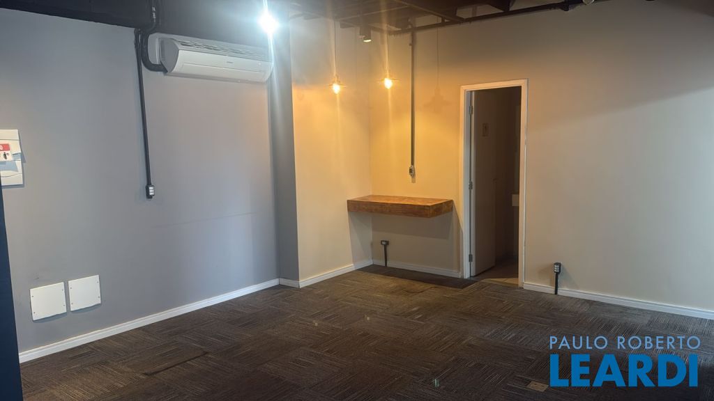 A sala contém ar condicionado, piso elevado, carpete e iluminação.