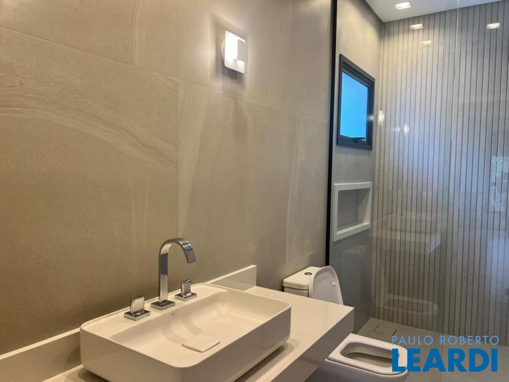 CASA MODERNA, COM PÉ DIREITO DUPLO, COM CINCO SUÍTES, SENDO QUATRO ANDAR SUPERIOR, TODAS COM SACADA E AR CONDICIONADO. A MASTER COM CLOSET, HALL ENTRE AS SUÍTES. TERREO: HALL DE ENTRADA, AMBIENTES INTEGRADOS SENDO SALA DE ESTAR, JANTAR E COZINHA COM ILHA, TORRE COM MICROONDAS E FORNO EMBUTIDO, COIFA E COOK TOP, TODOS DA MARCA CRISSAIR, MAIS UMA SUÍTE , ESCRITORIO, LAVABO, COM VIDROS INTEGRAGRAM A AREA DE LAZER, LAVANDERIA, SUÍTE DE EMPREGADA, EM UMA DAS LATERAIS DEPOSITO. ANDAR INFERIOR , POREM TERREO AO NIVEL DA RUA ( DEVIDO A TOPOGRAFIA DO TERRENO, ÁREA GOURMET COM ILHA, FORNO DE PIZZA, COM TOTAL ACESSO A AREA EXTERNA ATRAVÉS DE VIDROS, QUE ABREM TOTALMENTE, PISCINA COM TROCADOR DE CALOR. ENERGIA FOTOVOLTAICA, IMOVEL TOTALMENTE CLEAN, COM MUITA CLARIDADE E ACABAMENTO DE MUITO BOM GOSTO. CONDOMÍNIO COM PISCINAS EXTERNA E INTERNA AQUECIDA, QUADRAS DE TENIS, BEACH, PLAGROUND, ACADEMIA, SALAO DE FESTAS E MUITO MAIS. PARA VOCE QUE PROCURA UM IMOVEL MODERNO E BASTANTE ACONCHEGANTE. VENHA NOS FAZER UMA VISITA.