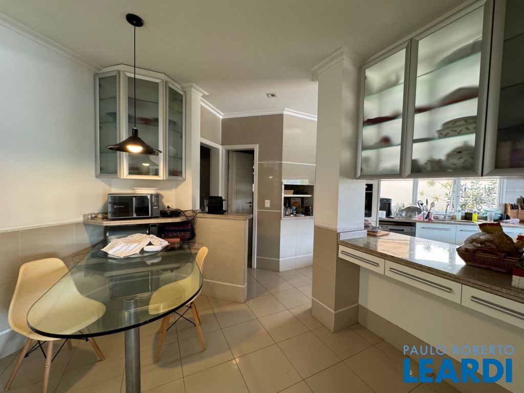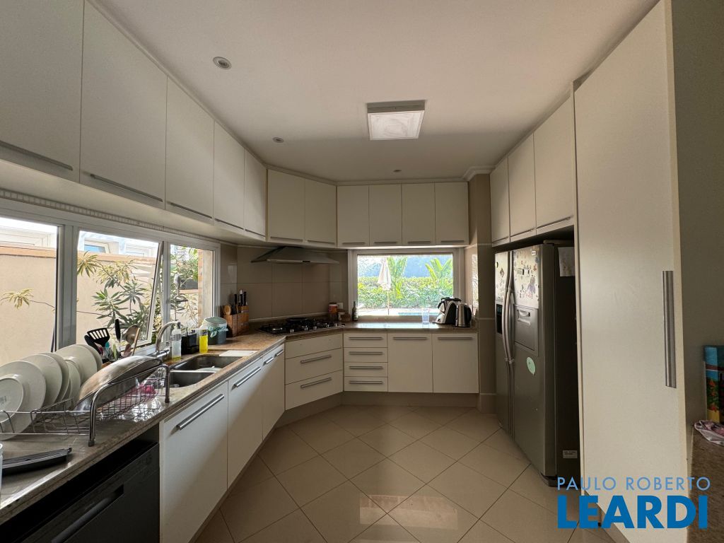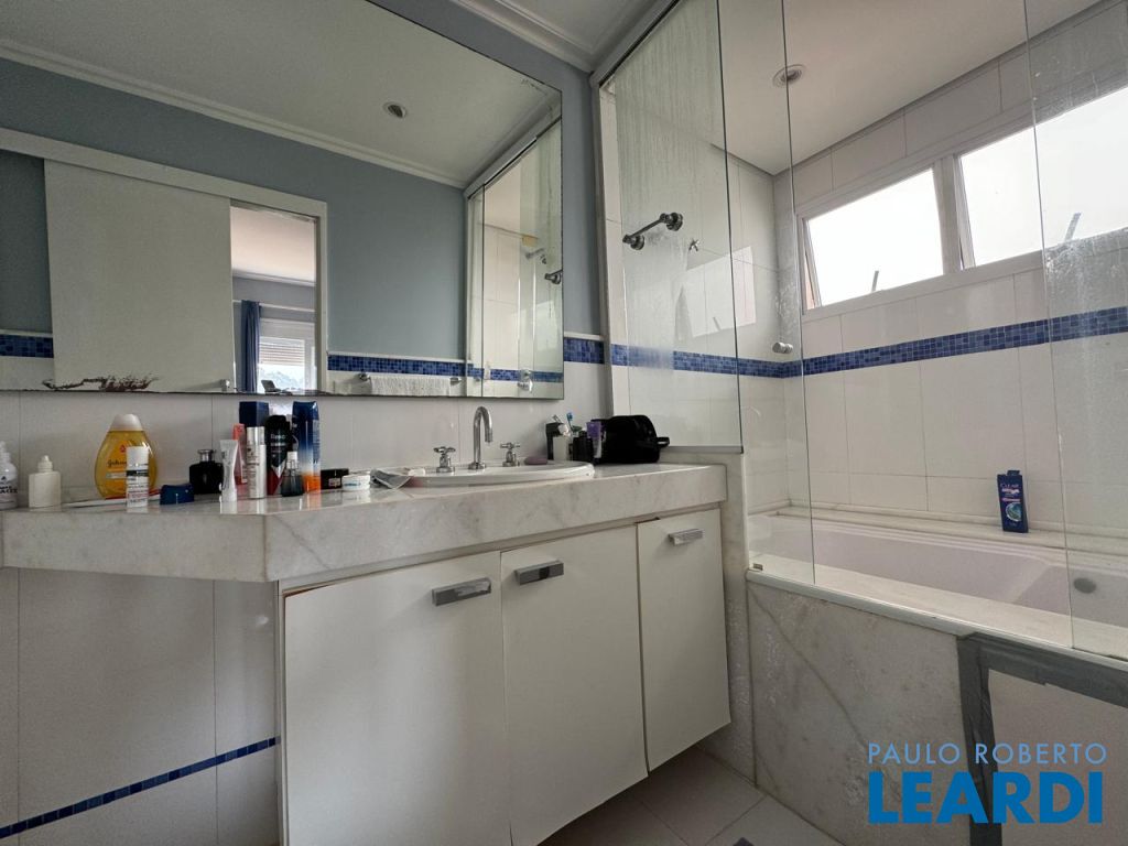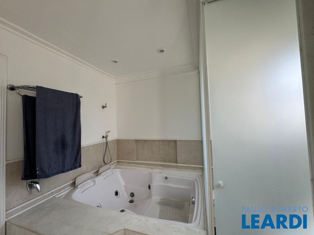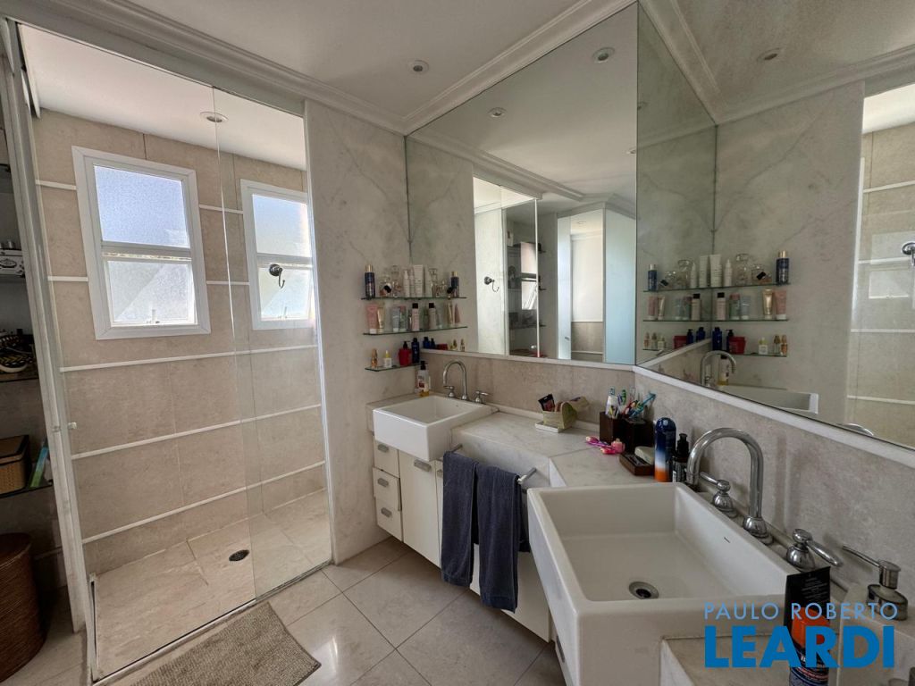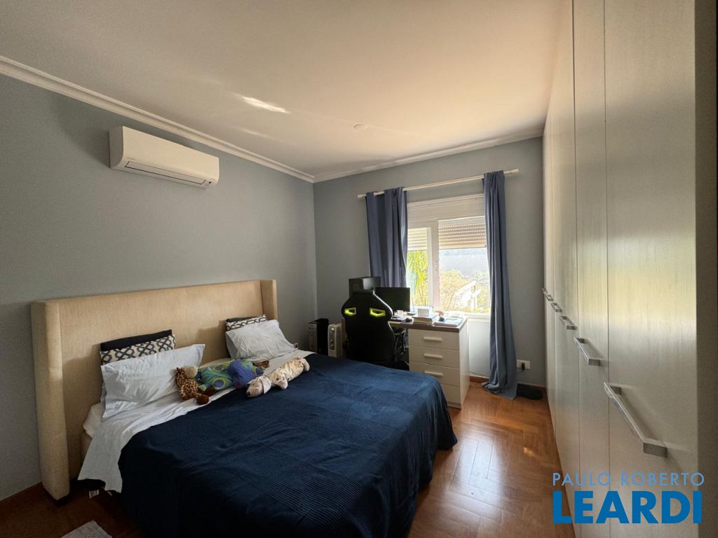 4 suítes sendo máster com closet, 2 cubas e hidromassagem, repleta de armários, ar-condicionado, sala íntima de TV, copa de apoio