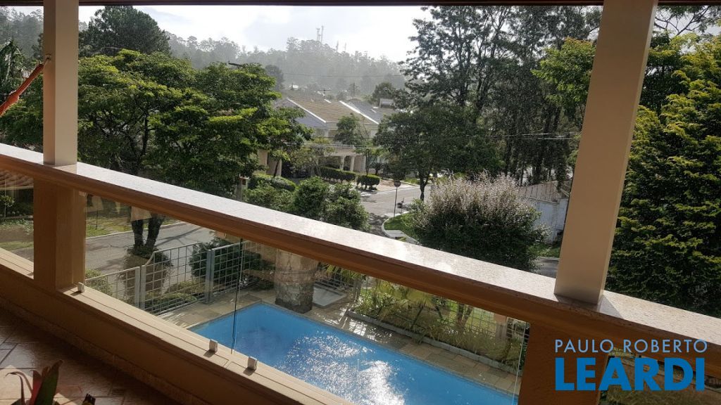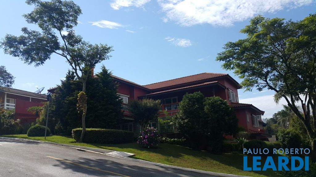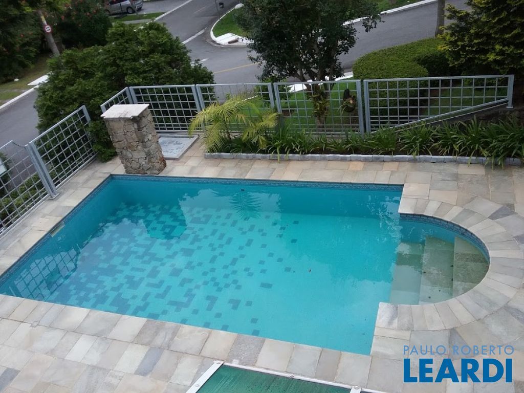 Casa a venda em condomínio Morada das Estrelas, na Aldeia da Serra, a 350 metros acima do nível da cidade de São Paulo, com 600 metros de área construída, 780 metros de terreno, sendo 240 metros de área não edificante, de esquina. É repleta de armários, com hidromassagem na suíte principal. Possui duas cozinhas com churrasqueira, sendo uma na casa e outra externa no espaço gourmet. No basement da casa tem um espaço para adega, entrada lateral para serviços, garagem para 9 carros sendo 3 cobertas e piscina.