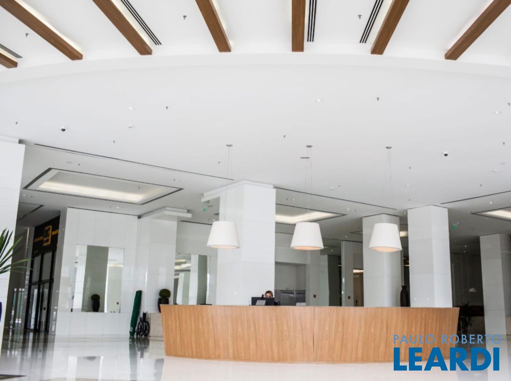 Laje inteira de 1.220m² em edificio corporativo de altíssimo padrão (triple A) com localização exclusiva na entrada do Alphaville – SP, em área de terreno de aproximadamente 11.500m² com 02 torres de 23 andares e 08 níveis de garagem. O prédio conta com hall com lojas e espaço para apoio ao centro empresarial. A portaria tem pé direito duplo com sistema de monitoramento cftv e catracas eletrônicas, além de elevadores inteligentes de alta velocidade. Sistema de transferência de dados, voz e imagens por fibra ótica, automação e segurança patrimonial. Fachadas imponentes com sofisticado sistema de pele de vidro e granito flameado. Com direito ao uso de 30 vagas de garagem de utilização comum e indeterminada, localizadas no 2º subsolo, e no 1º ao 6º pavimento do empreendimento. helipontos homologados.