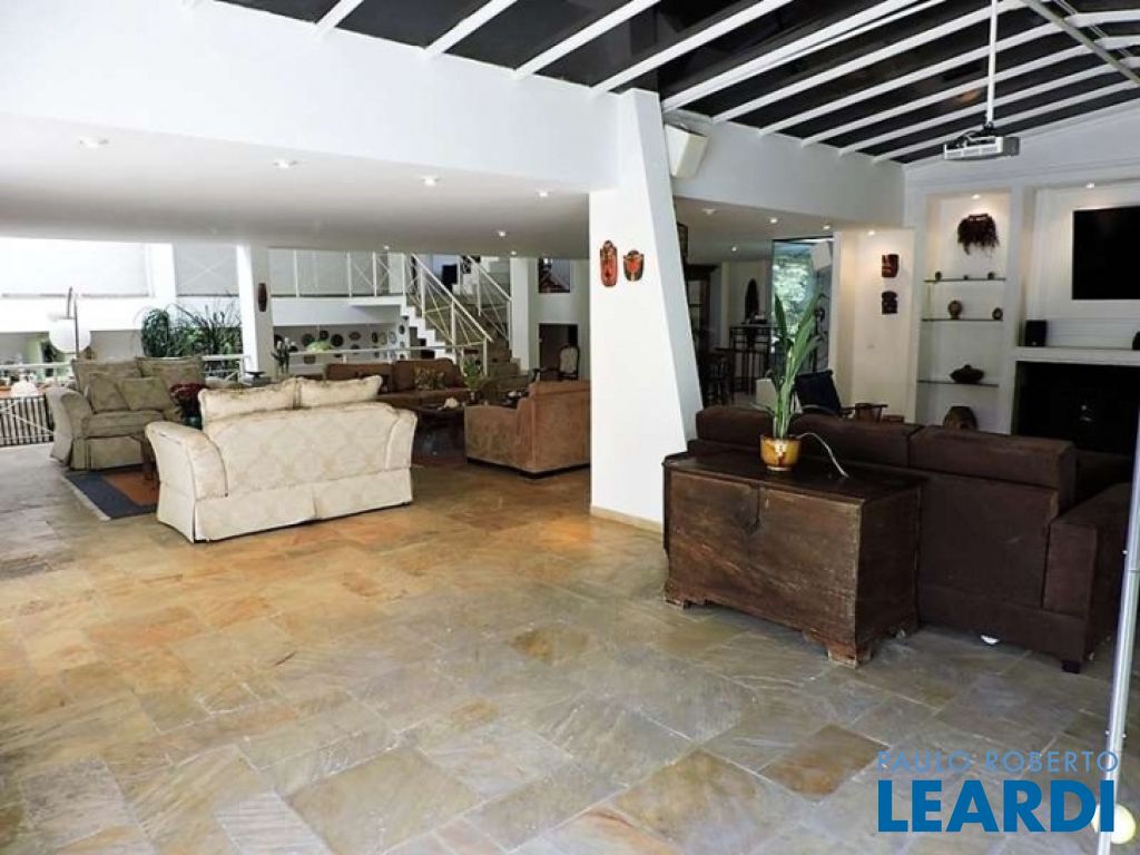 Casa clara e ventilada, com linhas modernas, dentro de condomínio fechado na Chácara São João. Lote plano, 100% aproveitável, cercado por duas ruas e lago do condomínio. Living para 5 ambientes, com ar condicionado: salas de estar com lareira, home-theater, jantar, inverno e bar (com adega). Piso em pedra mineira. Sala de almoço anexa a cozinha e sala íntima no andar dos quartos. 4 amplas suítes no piso superior, todas com ar condicionado espaço para escritório e muitos armários. Suíte de hóspedes em anexo. Cozinha ampla e clara, repleta de armários planejados, com copa. Grande área de serviços e lavanderia, com armários. Jardins gramados com muitas árvores, plantas ornamentais, flores e frutíferas. Amplo salão de festas/jogos com churrasqueira, forno a lenha e vestiário, ao lado da piscina. Piscina em alvenaria (10 x 5). Quadra de tênis iluminada. Ateliê. Canil. Dependências de empregada (suíte). Depósito e vestiário de serviços. Torre da caixa dágua (7 mil litros) com 14m de altura. Sistema solar fotovoltaico - a casa produz sua própria energia elétrica!