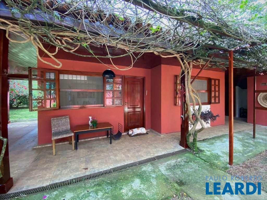 - Localizada em bolsão fechado com portaria 24h e segurança armada (Engefort) - Ótima casa de campo térrea, em terreno amplo, com muita natureza e tranquilidade. - Integrada com bom acabamento. - Portas e janelas em madeira. - Pisos em porcelanato, cerâmica e revestimento de madeira. - Frutíferas: pitanga, jabuticaba, 3 mexericas, limão, carambola e ameixa. - 3 entradas: social, lazer e serviço. - Hall de entrada social. - Lavabo com tampo em travertino. - Hall íntimo com roupeiro. - 3 suítes com armários e ventiladores, sendo a master com closet. - Banheiros com bancada, pia, espelho, gabinetes, bidê e box de vidro. Sendo a master com tampo em mármore Travertino. - 5 Banheiros com o lavabo e de empregada. - Living para 5 ambientes integrados e voltados para varanda e quintal, com lazer e jardim. - Salas de TV e escritório com lareira, estar e jantar. - Anexo gourmet com churrasqueira, bancada, pia, gabinetes e balcão. - Piscina de fibra (6m x 3m x 1,60 profundidade) com ducha e solarium. - Depósito. - Cozinha planejada. - Área de serviço com dependências de empregada. - Lavanderia externa coberta e integrada à cozinha, com bancada e tanque. - Depósitos e oficina. - Portão automático. - Garagem para 4 vagas, sendo 2 cobertas. - Aquecimento: Elétrico (preparado para Gás e Boiler). - Abastecimento de água: Sabesp. - Armazenamento: 2.000 litros (2 caixas x 1.000 litros). Permite financiamento, ligue e agende uma visita !!!!