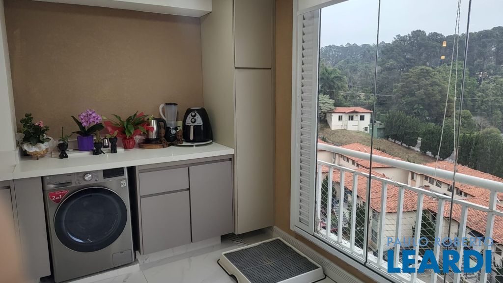 Lindo Apartamento Moderno na Granja Viana - Terraço D'Art 📍 Localização: Terraço D'Art, Km 26, Cotia, SP 💰 Valor de Venda: R$ 430.000,00 📐 Área útil: 61m² 💵 Condomínio: R$ 636,00 💵 IPTU: R$ 70,00 🚗 2 vagas de garagem Sobre o Imóvel: Este lindo apartamento moderno destaca-se pela sua iluminação natural e uma vista encantadora. Com localização privilegiada na Granja Viana, tem fácil acesso à Rodovia Raposo Tavares, Rodoanel e BR 116. O imóvel conta com ambientes integrados e móveis planejados de alta qualidade e bom gosto, oferecendo um espaço aconchegante e funcional. 2 dormitórios, sendo 1 suíte com armários planejados; Sala para 2 ambientes com painel de TV e piso em porcelanato; Varanda gourmet que aceita churrasqueira a gás, proporcionando uma bela vista; Cozinha americana equipada com armários de qualidade; Área de serviço bem planejada. Condomínio Terraço D'Art: O condomínio oferece lazer completo para toda a família e portaria 24 horas, garantindo segurança e tranquilidade. Cercado de muito verde, você poderá desfrutar de uma vida com qualidade e contato com a natureza. Infraestrutura e Localização: 📍 Próximo aos melhores colégios da região, comércios variados, rica gastronomia, parques, clínicas e laboratórios. Tudo o que você precisa ao alcance de poucos minutos. Não perca essa oportunidade! Entre em contato para agendar sua visita e conhecer pessoalmente este apartamento dos sonhos.