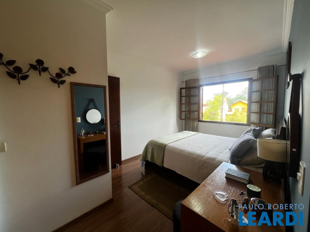 Casa em Condomínio dentro do Bolsão Residencial Paisagem Renoir II e III, com 14 casas, cercado de verde, próximo à academias, clínicas veterinárias, pizzarias, posto de gasolina e restaurantes. Com espaços amplos e bem distribuídos, esta casa é ideal para quem busca conforto, privacidade e um contato próximo com a natureza. A distribuição interna compreende quatro dormitórios, sendo duas suítes, uma delas master com closet e banheira. As salas de estar, jantar e lareira proporcionam espaços acolhedores para momentos em família. Além disso, a residência conta com seis banheiros, copa e cozinha equipada com armários, atendendo às necessidades de uma vida confortável. Ótima localização, próximo ao retorno Km 26 da Rodovia Raposo Tavares com fácil acesso ao Rodoanel.