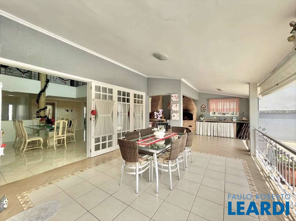 - Linda casa construída para morar, integrada e com ótimo acabamento. - Envidraçada, bem arejada e iluminada. - Imóvel repleto de armários. - Portas e janelas em madeira e vidro e alumínio e vidro. - Pisos em porcelanato, mármore Travertino, revestimento de madeira, cerâmica, granito rústico, pedras São Tomé e Miracema. - Projeto de gesso e iluminação. - Jardim com paisagismo formado, com frutíferas: jabuticaba, acerola, laranja lima e limão cravo. - Telha asfáltica Shingle. - Louças e metais de qualidade. - 3 acessos: social, lazer, garagem / serviço. - Hall de entrada social com lavabo. - Escritório com 2 estações de trabalho e ar condicionado. - Escada de alvenaria revestida em Travertino, com guarda corpo inox. - Hall íntimo na parte superior com guarda corpo de ferro trabalhado. - 4 suítes com armários, sendo 2 com closets e ar condicionados. A master com aparador, gaveteiros, closet sr. e sra., ventilador e grande varanda. - Banheiros com tampos em resina, espelhos, gabinetes e box de vidro. A master com 2 cubas e hidro dupla panorâmica. - Living para 4 ambientes voltados para uma grande varanda gourmet, piscina e jardim. - Salas de estar, lareira, jantar e bar. - Sala de almoço envidraçada voltada para a varanda, integrada ao living e à cozinha. - Copa cozinha planejada Elgin repleta de armários, com 3 bancadas, sendo 1 grande em "L", 2 cubas , gabinetes. Fogão 5 bocas Electrolux e coifa inox. - Área de serviço aberta ensolarada e lavanderia fechada com 2 tanques inox, quarto de passar ou despensa. - Varanda Gourmet grande para até 5 ambientes, comportando umas 40 pessoas voltada para a piscina e jardim. Com churrasqueira, forno de pizza, bancada e pia. - Piscina 5m x 9m com solarium e casa de máquinas. - Salão multiuso com varanda e acesso para o quintal e piscina, ideal para festas, academia, home office, atelier, brinquedoteca. - Suíte de serviço ou hóspedes. - Vestiário com sauna seca para 6 pessoas. -