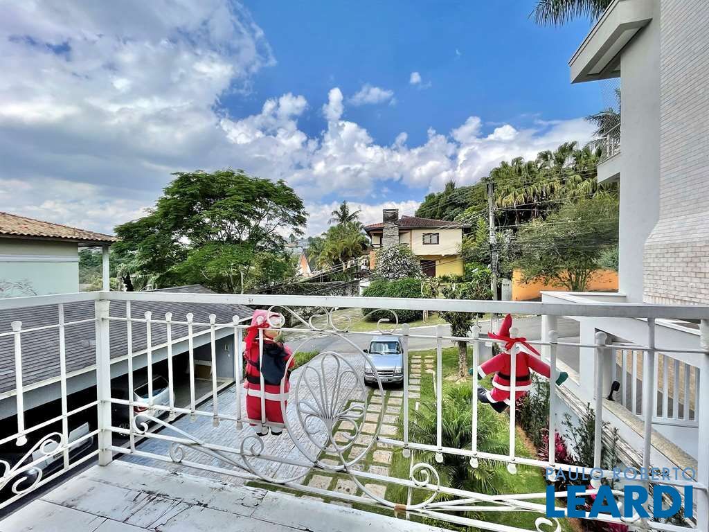 Linda casa construída para morar, integrada e com ótimo acabamento. Envidraçada, bem arejada e iluminada. Imóvel repleto de armários. Portas e janelas em madeira e vidro e alumínio e vidro. Pisos em porcelanato, mármore Travertino, revestimento de madeira, cerâmica, granito rústico, pedras São Tomé e Miracema. Projeto de gesso e iluminação. Jardim com paisagismo formado, com frutíferas: jabuticaba, acerola, laranja lima, limão cravo. Telha asfáltica Shingle. Louças e metais de qualidade. 3 acessos: social, lazer, garagem / serviço. Hall de entrada social com lavabo. Escritório com 2 estações de trabalho e ar condicionado. Escada de alvenaria revestida em Travertino, com guarda corpo inox. Hall íntimo na parte superior com guarda corpo de ferro trabalhado. 4 suítes com armários, sendo 2 com closets e ar condicionados. A master com aparador, gaveteiros, closet sr e sra, ventilador e grande varanda. Banheiros com tampos em resina, espelhos, gabinetes e box de vidro. A master com 2 cubas e hidro dupla panorâmica. Living para 4 ambientes voltados para uma grande varanda gourmet, piscina e jardim. Salas de estar, lareira, jantar e bar. Sala de almoço envidraçada voltada para a varanda, integrada ao living e à cozinha. Copa cozinha planejada Elgin repleta de armários, com 3 bancadas, sendo 1 grande em “L”, 2 cubas, gabinetes. Fogão 5 bocas Electrolux e coifa inox. Área de serviço aberta ensolarada e lavanderia fechada com 2 tanques inox, quarto de passar ou despensa. Varanda Gourmet grande para até 5 ambientes, comportando umas 40 pessoas voltada para a piscina e jardim. Com churrasqueira, forno de pizza, bancada e pia. Piscina 5m x 9m com solarium e casa de máquinas. Salão multiuso com varanda e acesso para o quintal e piscina, ideal para festas, academia, home office, atelier, brinquedoteca. Suíte de serviço ou hóspedes. Vestiário com sauna sec