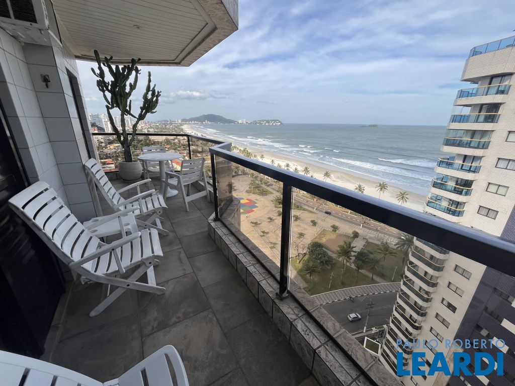 APTO COM SACADA LINDA VISTA MAR, 3 DORMS, 2 SUÍTES, ARMÁRIOS, AR CONDICIONADO NOS 3 QUARTOS, ÁREA DE SERVIÇO, 2 VAGAS, PRÉDIO COM SALÃO DE FESTAS GOURMET, SALÃO DE JOGOS, CHURRASQUEIRA, BRINQUEDOTECA, PISCINA, SOLARIUM, SAUNAS, ACADEMIA, PORTARIA 24 HORAS E SERVIÇO DE PRAIA