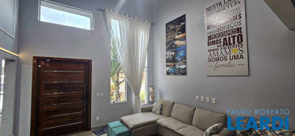 Casa com 03 dormitórios, sendo 02 suites com sacada, e um com closet e ar condicionado, ampla sala com pé direito alto para dois ambientes, escritório, lavabo, cozinha com palanejados, despensa, lavanderia, garagem para 02 carros e uma espaçosa área gourmet com piscina. Casa com sistema de energia fotovoltaica e aquecimento solar. Aceita financiamento e permuta por terreno em condomínio em Louveira. O condomínio possui portaria 24 h, lhe proporcionando segurança, e muito bem localizado, com fácil acesso a rodovia Romildo Prado e Anhanguera. Agende sua visita.