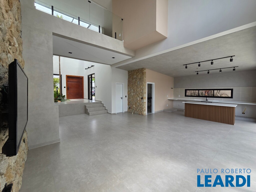 Casa em Condomínio bem localizado, com área principal construída de 275m com revestimentos de alto padrão para atender com muito conforto as necessidades de sua família. A casa possui 3 suítes amplas e arejadas, sendo a suíte principal com hidromassagem e chuveiro duplo, persianas, paisagismo e automação iluminação interna completa. Sala e hall com pé direito duplo e palmeira interna , cozinha e sala integradas com paredes em pedra natural moledo, com lareira a lenha e porta principal com fechadura digital e automatizada para sua maior segurança. Possui uma linda e excelente área de lazer, com piscina com borda infinita, sauna integrada com a piscina, banheiro com vista para o bosque para proporcionar ótimos momentos de convivência com a família e amigos. Possui 130m de salão inferior com fundo para o bosque para que você possa utilizar conforme suas necessidades como espaço de lazer, academia, salão gourmet, sala de jogos, etc. O Condomínio possui uma excelente infra-estrutura com portaria principal,segurança 24 horas com serviço de apoio e estacionamento. Para o seu momento de descanso e lazer o condomínio possui circuito de caminhada com estação de ginástica, área fitness, ciclofaixa com mais de +3km, quadras esportiva, vôlei e beach tennis(saibro), campo de futebol, society e mini campo gramado. Também possui Alameda arborizada, deck mirante, play aventura, praça da fonte, praça bem-estar, praça kids, jardim das essências, pomar,100 mil metros de área preservada e lindas piscinas adulto e infantil com biribol. Garagem para 6 carros e depósito embutido na garagem. Para confraternização da família e amigos possuiu um amplo salão de festas com espaço gourmet ,churrasqueira e forno de pizza integrado. Tudo isso por um valor de 3.300.000 Agende uma visita conosco pelo telefone (11) 93372-9019.