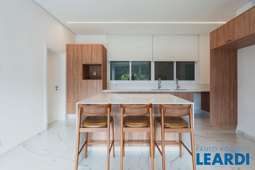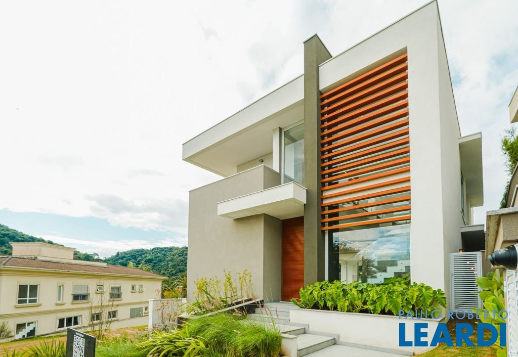 Exclusivamente planejada para aqueles que buscam a excelência em residências de alto padrão, esta notável casa ostenta uma localização privilegiada e possui aproximadamente 620 metros quadrados construídos em um terreno de 539 metros quadrados. Ao adentrar, depara-se com uma sala de estar espaçosa, apresentando pé direito duplo e generosas janelas que permitem a entrada abundante de luz natural, oferecendo uma deslumbrante vista para a mata. Desenvolvida com meticulosa atenção aos detalhes e empregando os melhores materiais e acabamentos, garante máximo conforto e durabilidade. A área de lazer é completa, ideal para desfrutar de momentos únicos com a família e amigos, incluindo uma área gourmet completa, uma piscina convidativa para relaxamento, além de sauna e academia para aqueles que buscam manter a forma e relaxar simultaneamente. O paisagismo impecável acrescenta um toque de elegância e sofisticação, enquanto a vista para a mata proporciona uma sensação de paz e tranquilidade. Com espaço para seis ou mais veículos na garagem, atende às necessidades de toda a família. 625 m² de Área construída e 539 m² de terreno Hall Entrada , Sala de Estar / lareira , Sala de Jantar, Sala de TV, Cozinha, Lavanderia, Área Gourmet, Vestiário, Terraço Gourmet, Piscina rasa , Dormitório de empregada e banheiro. Pavimento Superior: Suíte master com Closet, Suíte 02 , Suíte 03, Suíte 04, Sala intima, Copa e Rouparia. Garagem (4 Carros/ Motos/ Bicicletas), Casa máquinas e Depósitos. Aquecimento de água solar com apoio a gás Sistema fotovoltaico de geração de energia para 500Kw Construção face norte Ambientes bem ventilados e iluminados Sistema de entrada com reconhecimento facial Cobertura wi-fi e de alta velocidade Sistema de climatização (infra ar-condicionado) Previsão para elevador Interruptores inteligentes nas áreas sociais e externas (acionamento por aplicativo) Sistema de aspiração central (infra) As informações estão sujeitas a alterações. Con