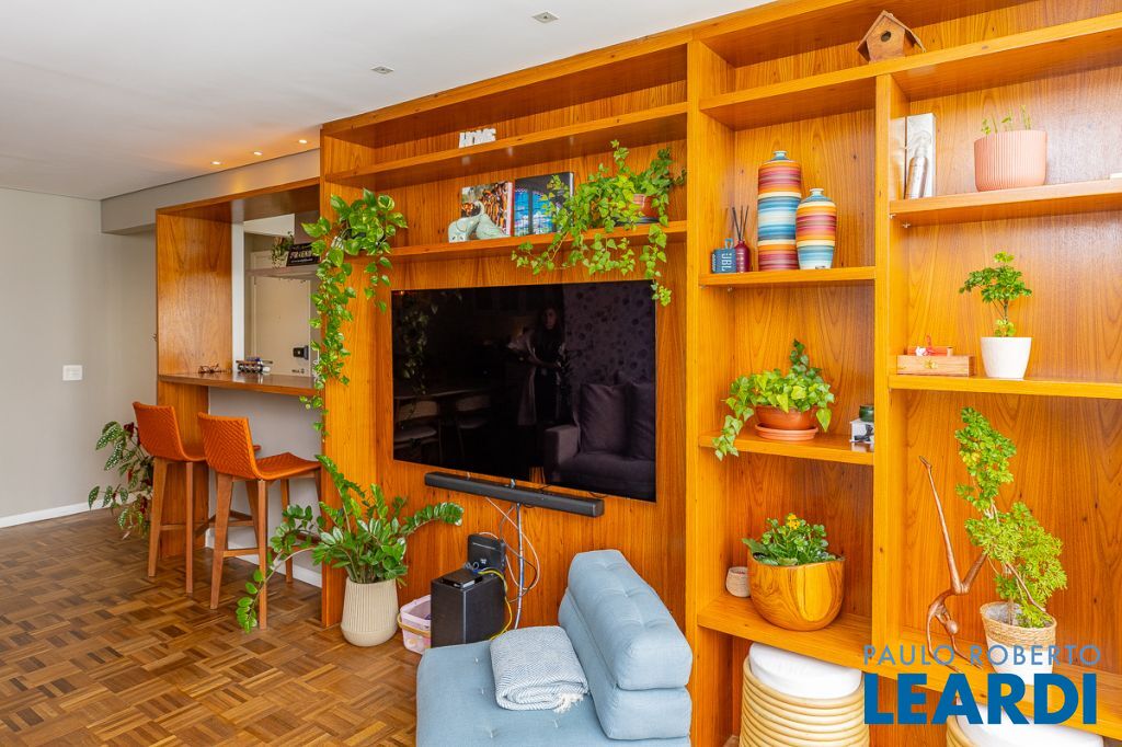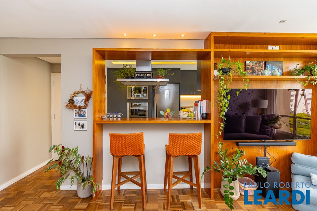 Com generosos 107 metros quadrados, este imóvel foi meticulosamente planejado para oferecer o máximo de conforto e funcionalidade Conceito Aberto: Uma sala ampla e integrada, perfeita para receber e socializar, unindo o estar e o jantar em um único ambiente muito iluminado e arejado, com janelões chão ao teto, dando maior amplitude ao ambiente e entrada de Luz. Piso de madeira em taquinho renovado, o que proporciona aconchego e beleza. Aparador embutido em madeira dando suporte á sala de jantar e espaço para uma adega tamanho (34 garrafas). Cozinha Gourmet: Uma cozinha totalmente mobiliada com o que há de melhor, incluindo armários planejados de alta qualidade e uma bancada que contempla um cooktop, ideal para quem ama planejar e cozinhar para a família e/ou amigos. Uma geladeira Panasonic dupla com freezer na parte de baixo, e um conjunto de forno embutido e forno de microondas na marcenaria. Lavanderia com uma máquina lava e seca marca Brastemp e uma dependência de serviço que pode servir como despensa, depósito ou até um escritório. Dormitórios: 3 dormitórios aconchegantes, sendo 1 suíte, e a master com closet e muitos espelhos, o que dá uma sensação de amplitude. Nos outros 2, armários planejados e muita iluminação natural. 1 banheiro social reformado e charmoso, com acabamentos de primeira linha e chuveiro Deca. Aparelhos de ar condicionado quente e frio em todos os ambientes. Vaga de Garagem: Conforto e segurança com 1 vaga de garagem exclusiva e demarcada.