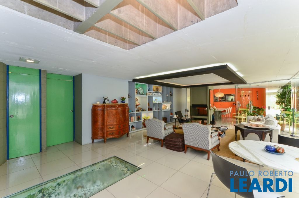 “Uma coisa, é morar em uma casa simpática, com bom teto onde não chova, paredes boas e resistentes que aquentam os ventos e os tempos de uma e mais vidas, com quartos arrumados e espaçosos, uma sala ampla para almoços em família e jantares entre amigos; uma cozinha iluminada e funcional; um jardim com arbustos, relvas, insetos, pássaros e flores...Outra coisa é respirar, viver, morar, se mover, se banhar, sonhar e convidar a si e as pessoas queridas para estar inteiramente dentro de uma obra de arte. Isso é intangível.” Th. S. Projeto assinado pelo inovador e sensível arquiteto Ruy Ohtake, pessoa excelente e profissional de renome tanto nacional quanto internacional. Excelente casa térrea localizada em rua tranquila e arborizada do Brooklin Velho em São Paulo. Bairro com excelentes escolas estrangeiras e nacionais da região, como o Colégio Suiço Brasileiro, Chapel, Rudolf Steiner, Lourenço Castanho, e Vertice, entre outros. Assim como dos shoppings (Morumbi, Market Place, Ibirapuera) e do comercio local (Mambo, Pão de Açucar, Carrefour, Fonte Petrópolis, comércio das ruas do Brooklin). Está também próxima as avenidas Washington Luis, que acessa o Aeroporto de Congonhas; Roberto Marinho e Vicente Rao. A casa possui 367 m² de área construída e 500 m² de terreno. Os espaços são distribuídos em sala de estar e jantar integradas com muita iluminação natural e uma lareira moderna, 3 dormitórios, sendo 1 suíte, 4 banheiros, sala de estar e jantar integradas com muita iluminação natural e uma lareira moderna. Cozinha com balcão de estilo americano, e como é característico dos projetos do grande arquiteto Ruy Ohtake, este local que propõe fascinantes alquimias gastronômicas, tem um formato circular, que lembra as formas fluidas ligadas aos círculos Enso, que simbolizam a iluminação, a força, a elegância, o universo e o vazio. Os quartos são muito bem distribuídos, iluminados e arejados devido a ventilação cruzada e a localização da casa neste bairro verde.