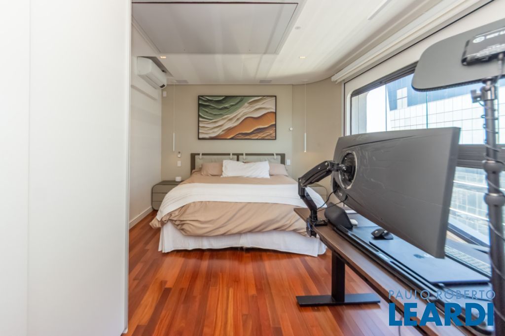 Uma oportunidade raríssima na Chácara Santo Antônio, ao lado do Shopping Parque da Cidade e com acesso imediato à Marginal Pinheiros, Av. Santo Amaro e Av. Vicente Rao. Localização estratégica, cercada por infraestrutura corporativa, gastronômica e de serviços, ideal para quem busca praticidade sem abrir mão de sofisticação. O apartamento está inserido no Condomínio Parque da Cidade, empreendimento recém-entregue pela EZTEC (final de 2024), referência em altíssimo padrão e um dos projetos mais completos da região. O condomínio oferece uma verdadeira experiência de clube: piscina descoberta, piscina coberta aquecida com raia, duas academias de alto nível, amplo jardim, quadra poliesportiva, salão de festas impecável, salão de jogos, espaço gourmet e espaço pet. O imóvel é um imponente duplex de 270m², recém-reformado e decorado com extremo bom gosto, vendido em formato porteira fechada – pronto para morar, com tudo incluso. Conta com um projeto moderno e funcional, além de automação completa de iluminação e som, proporcionando conforto e tecnologia em todos os ambientes. No pavimento inferior, uma ampla área social integrada com sala generosa e acesso a uma área externa privativa, ideal para receber. No pavimento superior, a área íntima abriga 4 suítes espaçosas, além de uma academia privativa, trazendo ainda mais exclusividade ao dia a dia. O apartamento dispõe de 5 vagas de garagem individuais e demarcadas, um diferencial raro mesmo em empreendimentos de alto padrão.