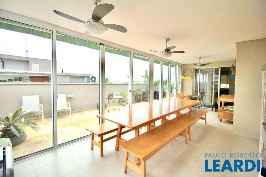 Moderna cobertura-duplex no Itaim Bibi, 4 suítes, 4 vagas de garagens, aconchegante e impecável, living para 3 ambientes e sala de TV, copa-cozinha, sala de almoço, churrasqueira, área gourmet. Piso Inferior: 3 suítes, sendo 1 master com closet e banheiro com hidromassagem, roupeiro no corredor de distribuição. Living com pé direto duplo, varanda envidraçada e lavabo, piso em mármore, sala de jantar, sala de almoço, cozinha, área de serviços, com dependência completa com despensa. Piso Superior: Escritório, mezanino, lavabo, 1 suíte, amplo terraço gourmet parcialmente fechado e coberto com churrasqueira. Vista de 360º, terraço gourmet e cozinha com vista livre permanente, localização muito privilegiada a poucos metros da Av. São Gabriel. Imóvel finamente acabado e decorado com muito boa distribuição. Excelente negócio para morar ou investir. Edifício muito seguro contando com 2 guaritas blindadas, pulmões de segurança e elevador privativo com senha.