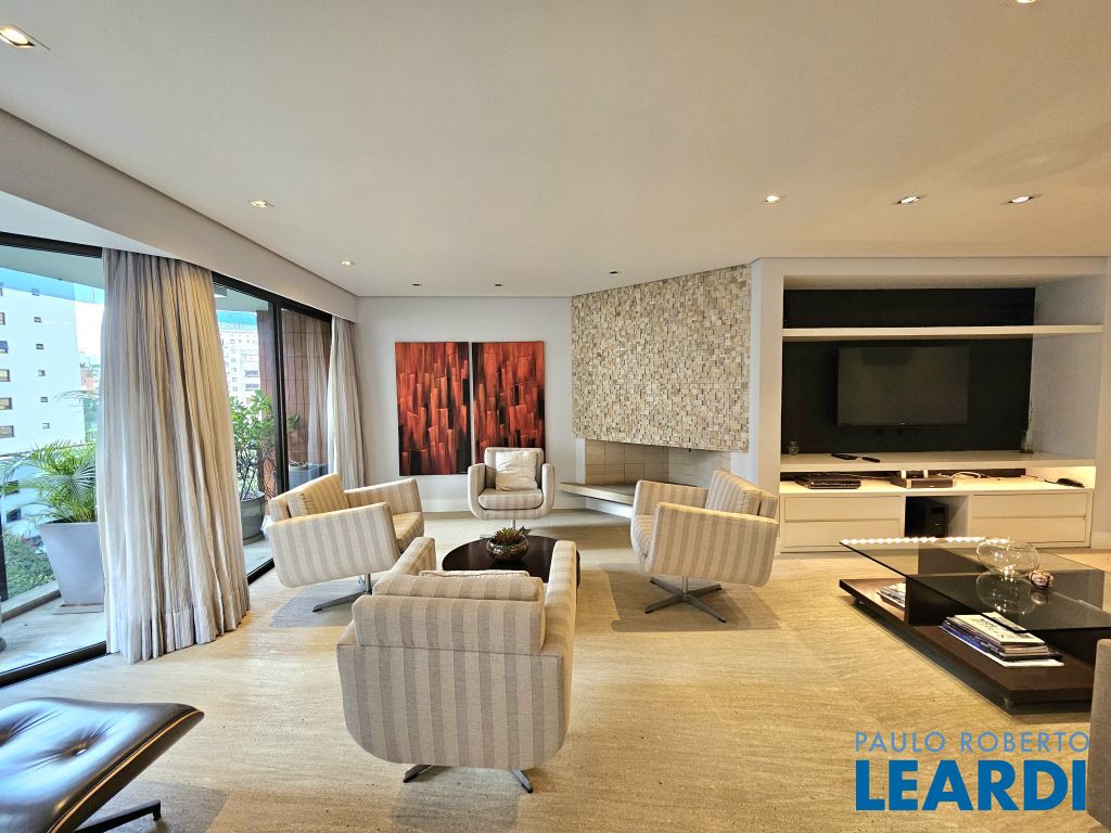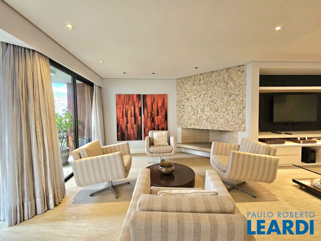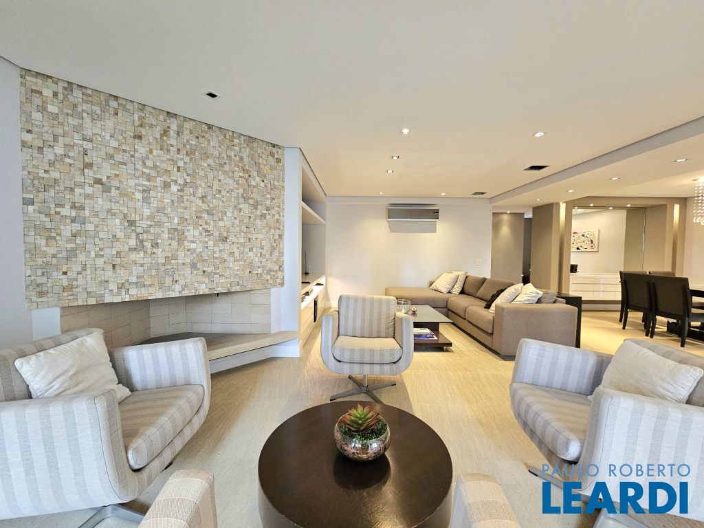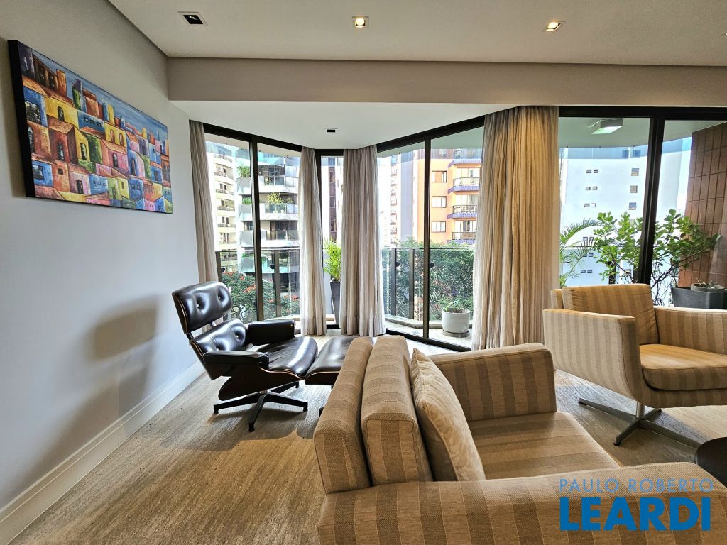 Apartamento no Itaim Bibi. Totalmente mobiliado e decorado. 163 m² - 2 suítes - 2 vagas livres, uma ao lado da outra. Living com piso em mármore para 03 ambientes com varanda e lareira. Hall social individualizado. Suíte máster com 2 closets + escritório com piso em madeira. Muito bem localizado no coração do Itaim Bibi, este apartamento de 163 m² será alugado totalmente mobiliado, com ótimos acabamentos. O living oferece três ambientes: sala com lareira e varanda que se estende de parede a parede, uma confortável sala de TV e a sala de jantar, que acomoda oito pessoas também com varanda. O piso é em mármore e a mobília é de excelente qualidade. No lavabo, a pia é esculpida e o revestimento em mármore. Além disso, o hall social é individualizado, garantindo privacidade. A cozinha é espaçosa, com janelões, muitos armários, eletrodomésticos em aço inox e utensílios e louça. A área de serviço conta com lavanderia ampla e quarto de serviço já montado com cama e armários, além de banheiro, ideal para quem possui funcionária que dorme no local. Na área íntima, o piso em madeira traz aconchego. A suíte máster possui dois closets, um escritório, varanda privativa e ar-condicionado. A segunda suíte também conta com varanda. O condomínio oferece lazer com piscina, brinquedoteca, playground e academia. Portaria 24 horas.