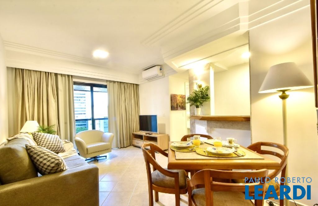 Condomínio localizado no bairro do Itaim Bibi. Um dos bairros mais tradicionais de São Paulo. Moderno e sofisticado, com tecnologia e recursos inteligentes que facilitam a sua vida. Apartamento aconchegante em andar alto, com 43 m2, com toda infra estrutura como: cozinha americana, cama box, TV com serviço de TV a cabo, ar condicionado e gostosa varanda. Localizado próximo ao centro financeiro, fácil acesso a Av. Faria Lima, 9 de Julho, Marginal Pinheiros, USP, Jóquei Club de São Paulo, além de variadas opções de lazer como shoppings, clubes e parques. Lazer com piscina na cobertura, fitness, sauna, restaurante. Lavanderia coletiva OMO.