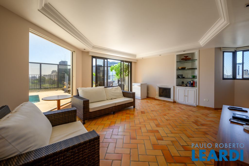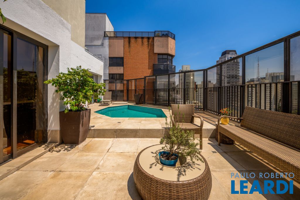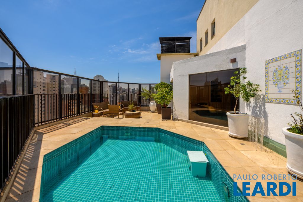 Cobertura Duplex com vista 360º para o Jardins — privacidade, exclusividade e conforto No piso superior, você encontra uma área completa de lazer: piscina, área gourmet com solarium, cozinha de apoio, sala com lareira e bar, espaço preparado para sauna, além de duas suítes com varanda ou jardim de inverno — sendo uma delas atualmente utilizada como escritório. O piso inferior dispõe de um elegante hall de entrada, living para três ambientes (sala de TV, estar e jantar), varanda, lavabo, cozinha integrada à sala de almoço, despensa, área de serviço e suíte para funcionária. Na área íntima, são duas suítes espaçosas, sendo a master com closet e banheiro com hidromassagem. O edifício oferece infraestrutura completa: vagas para visitantes, portaria 24 horas, piscina, academia, quadra poliesportiva, playground, salão de festas e gerador de energia. Localizada em um dos bairros mais desejados e tradicionais de São Paulo, esta cobertura está próxima a escolas renomadas como o Colégio Dante Alighieri, Clube Paulistano, estação de metrô Paulista, Shoppings, além de excelentes restaurantes e opções de lazer.