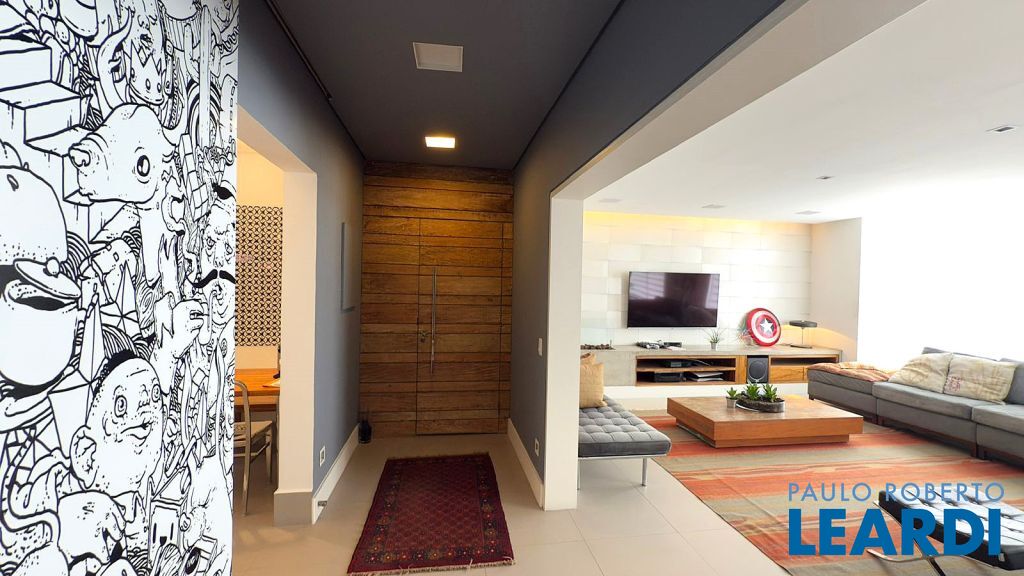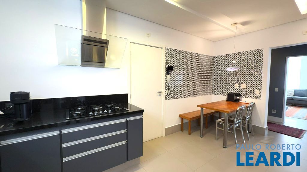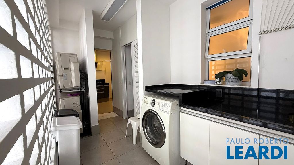 Ampla sala para três (3) ambientes, uma (1) suite, cozinha, área de serviço, dependências de empregados completas.