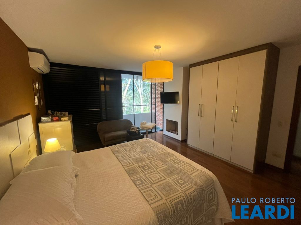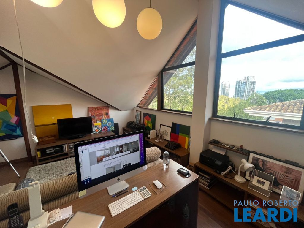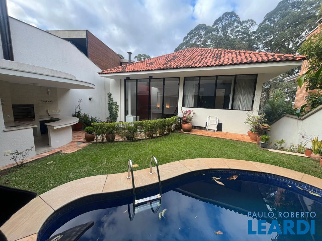 Casa com 430m² com 4 suítes sendo a master com lareira, closet e hidromassagem, living amplo com pé direito duplo, varanda ensolarada, área gourmet com piscina e um lindo jardim. Toda casa é muito bem iluminada com luz natural devido as janelas piso teto que trazem uma perfeita integração com a área externa. A casa possui ainda um charmoso sotão que pode ser utilizado como escritório, ateliê ou sala privativa e 4 vagas cobertas. Além disso, o condomínio está localizado no Panamby a poucos metros do Parque Burle Marx, do novo empreendimento Parque Global e amplo comércio com restaurantes, supermercados, padaria, fármacia e escolas. Agende sua visita! Nós da Leardi temos o imóvel que você tanto procura, vamos conversar mais a respeito. Seu sonho é o nosso sonho!