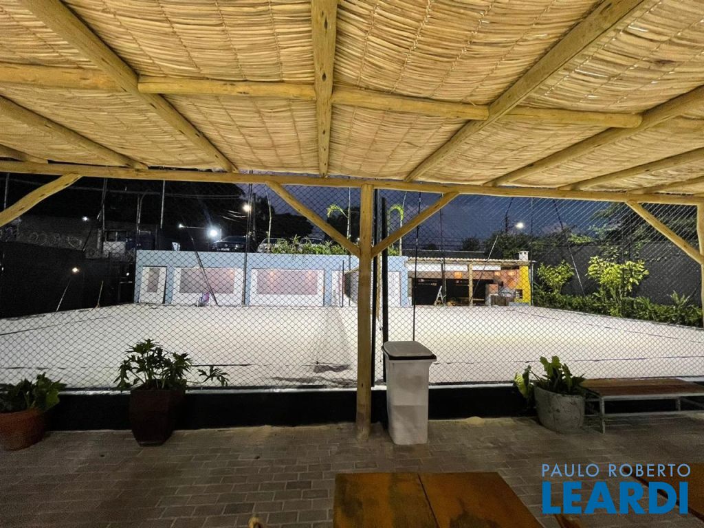 Terreno com 2 quadras de areia, 2 banheiros, restaurante, recepção, estoque, estacionamento.