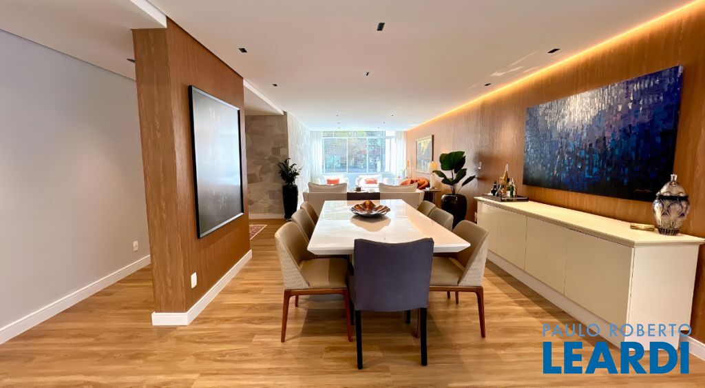 Apartamento realmente especial em Perdizes. São 236 m² privativos, um espaço amplo, pensado para oferecer conforto em cada detalhe. Ao entrar, você já sente a integração dos ambientes: a cozinha se conecta com a sala de estar e jantar, que recebe o sol da manhã e cria uma atmosfera iluminada e acolhedora. A sala também conta com revestimento em pedra São Tomé, que dá ainda mais personalidade ao ambiente. O apartamento dispõe de 4 quartos, sendo uma suíte elegante, além de sala de TV, home office e quarto de hóspedes, perfeitos para quem busca praticidade no dia a dia. Os banheiros são verdadeiros destaques: o social em granito petro escovado, e a suíte com mármore Guatemala, nicho iluminado em LED e marcenaria planejada. Tudo foi recentemente reformado: hidráulica e elétrica novas, acabamentos de alto padrão e marcenaria sob medida em todos os ambientes. O condomínio complementa a experiência com sala de festas, academia, churrasqueira e vagas de visitantes, além da sua vaga de garagem demarcada na matrícula. Um imóvel que une espaço, sofisticação e uma localização privilegiada em Perdizes
