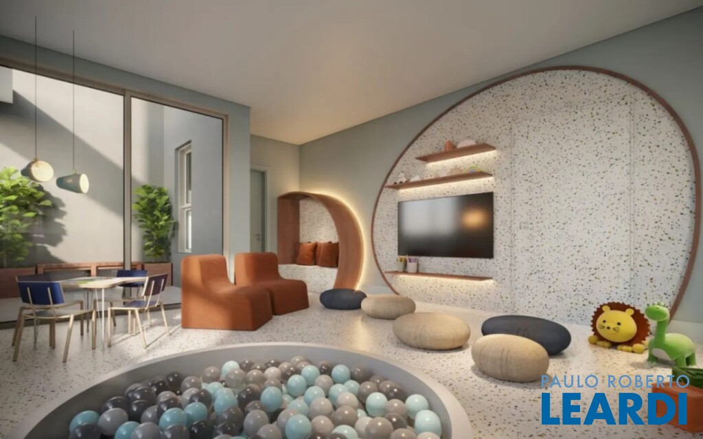 A cobertura tem dois pavimentos, na parte de baixo possui duas suítes, lavabo, escritório, cozinha, área de serviço e sala com varanda, na parte de cima um roof top com pergolado e estrutura pronta para criar ambientes de lazer como espaço gourmet, churrasqueira, piscina, solarium.