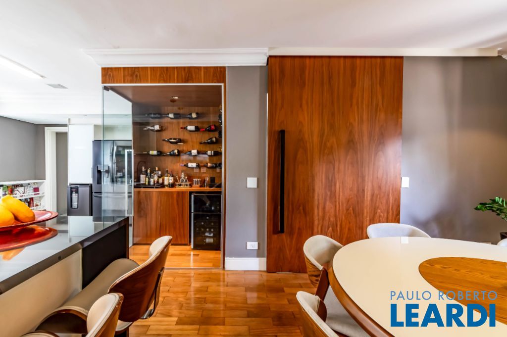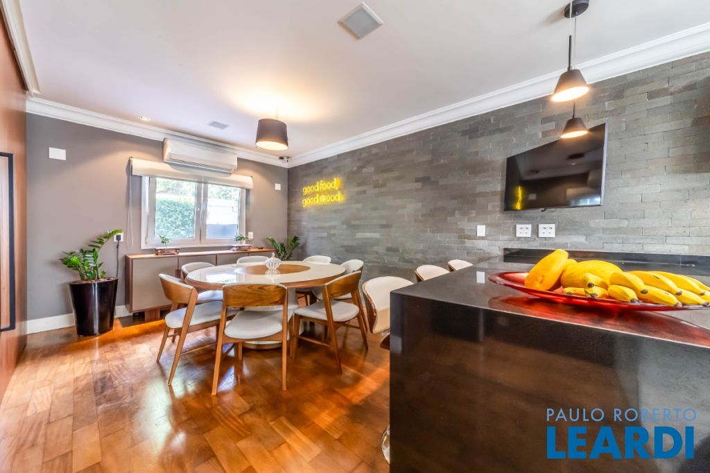 Casa moderna, integrada e bem equipada para viver com tranquilidade, no Alto da Boa Vista. Integração bem pensada A área social é fluida e conecta sala de estar, jantar e cozinha de forma natural. O living se volta para a área externa, criando uma relação entre os ambientes e o lazer. A presença da adega e a boa distribuição dos espaços reforçam a sensação de casa viva, prática e agradável para o dia a dia. Lazer ao ar livre A área externa concentra alguns dos grandes destaques da casa. Piscina aquecida, churrasqueira e um espaço gourmet criam um cenário para relaxar e reunir pessoas. Tudo funciona de forma integrada à casa, com boa insolação e uso fácil, transformando o lazer em parte da rotina. Conforto e tecnologia As quatro suítes oferecem ótimos armários e ar-condicionado, com uma delas atualmente configurada como escritório, facilmente reversível. A casa conta ainda com automação de iluminação, som e TV, além de sistema de energia solar. O projeto combina conforto com uma vivência tranquila no bairro.