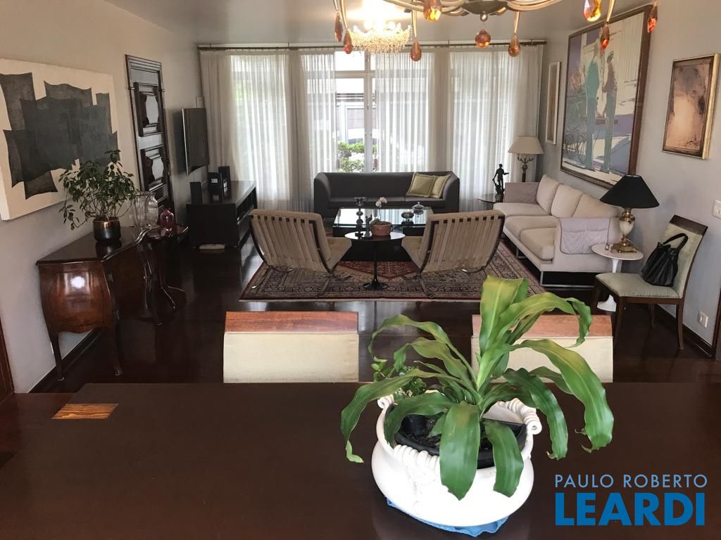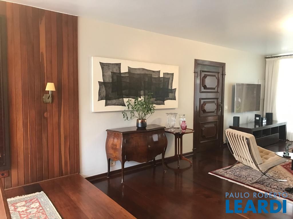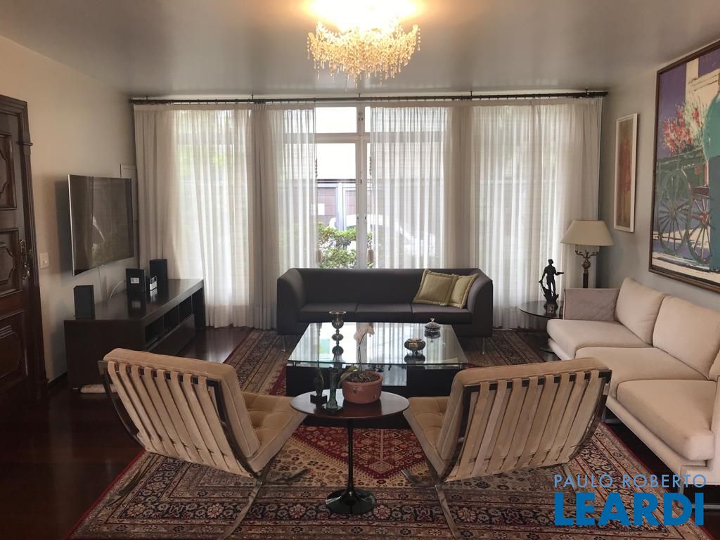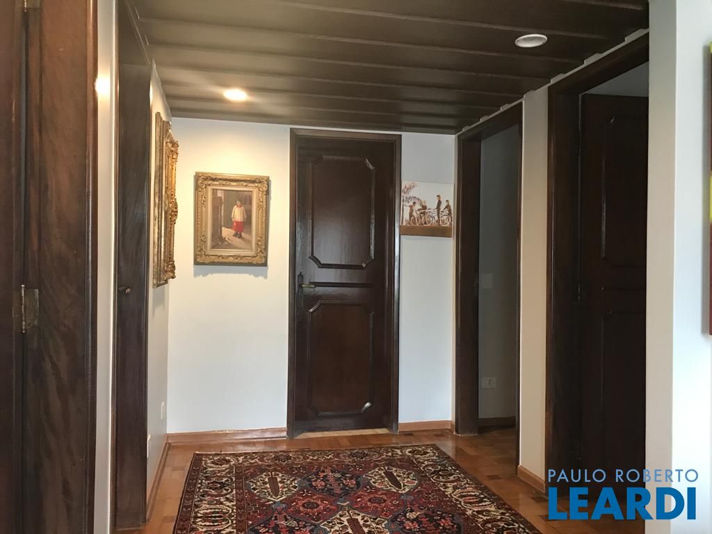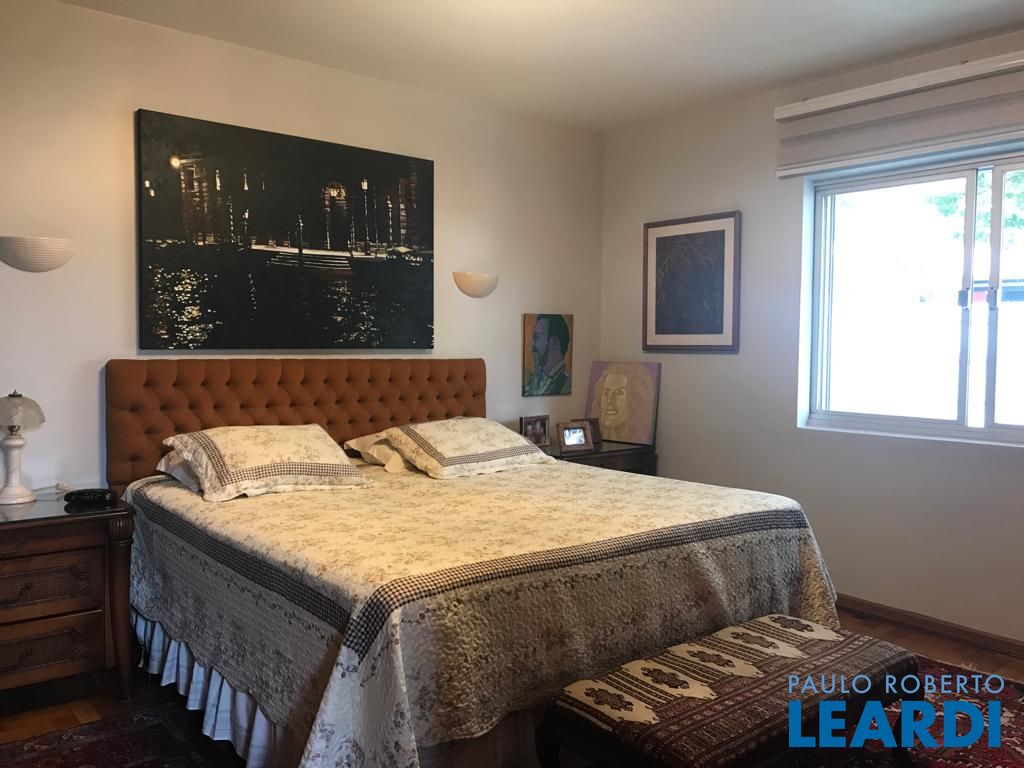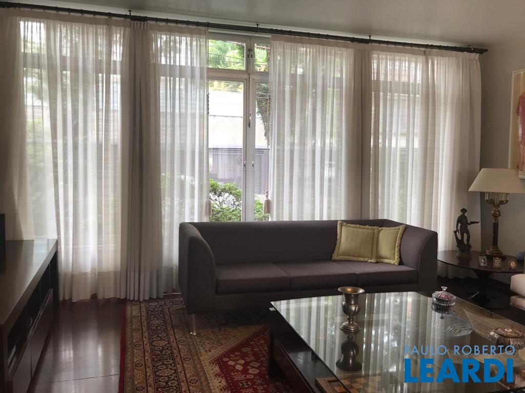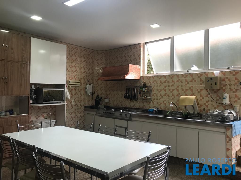Rua tranquila, com guarita e extremamente segura. Excelente estado de conservação, com living amplo, janelões com vista para o verde, trazendo luz ao ambiente. parte íntima, 4 espaçosos dormitórios, sendo uma suíte e todas com armários. parte inferior da casa, uma sala voltada para à piscina, espaço gourmet e jardim. possui também uma sauna, banheior e um depósito. Cozinha ampla, com bastante armários. vaga para 4 carros.